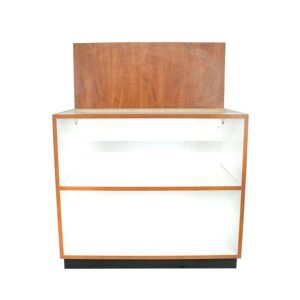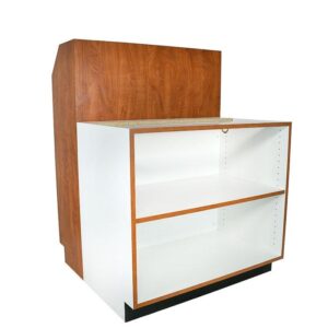 36″ Solid Front Cabinet: White melamine interior; 32.5″ high, 29″ deep, 24″ wide. Durable and stylish for checkout areas.